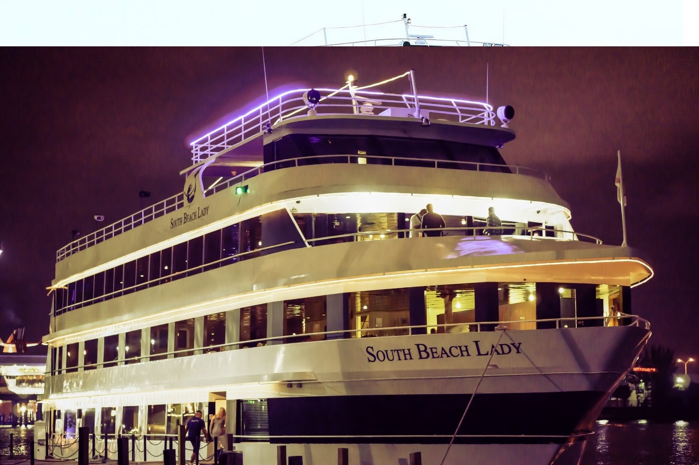 South Beach Lady is a superb four-deck motor yacht ideal for corporate and social yacht parties for up to 350 passengers in Hollywood Florida